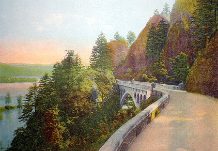 These include rare photos of spectacular structures now lost to time. Among these (below) is the soaring bridge at McCord Creek, destroyed to make room for the modern freeway, and the beautiful arched bridge at Hood River, replaced with a modern concrete slab in the 1980s.