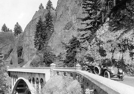 Oneonta Gorge has been a popular tourist attraction since the old highway opened in 1916. For nearly a century, adventurers have waded up the creek to the graceful 120-foot waterfall that falls into Oneonta Gorge, about a mile from the historic highway bridge. Only in recent years has overcrowding presented a serious threat to both the unique cliff ecosystem and the historic highway features here.