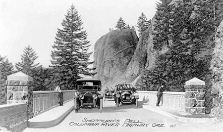 A new museum at Oneonta could also tell the story of the surviving gems along the old road that are now part of the Historic Columbia River Highway State Trail. These include (below) the spectacular section between Hood River and Mosier, with its iconic twin tunnels, the beautifully crafted stone bridge at Eagle Creek and the graceful arched bridge at Shepperd’s Dell.