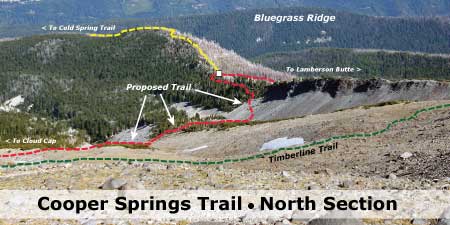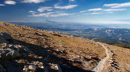 By the early 1960s, the Oregon Skyline Trail had been relocated to the west side of the mountain, following the Timberline Trail from Timberline Lodge north to the Bald Mountain Shelter, then on to Lolo Pass.
