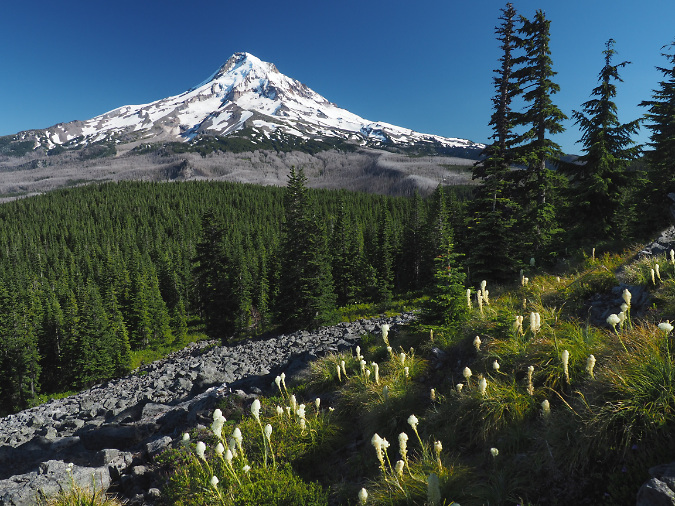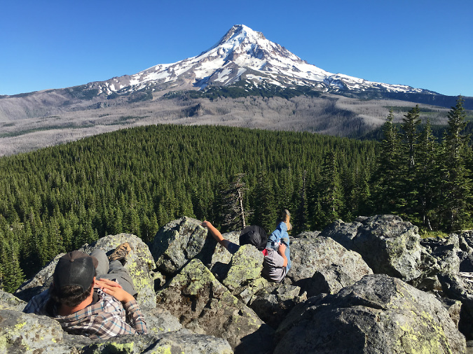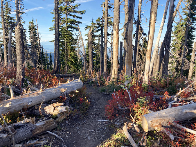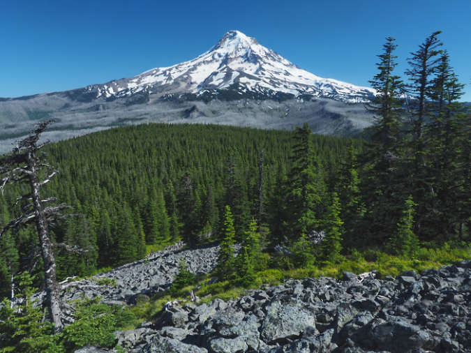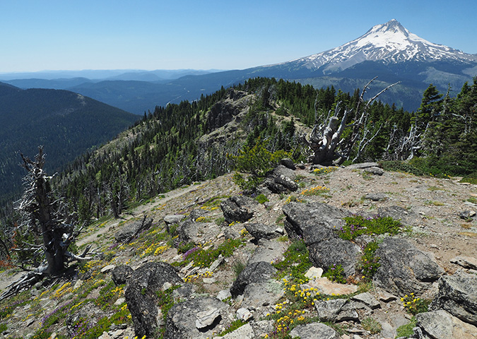 Once back at home, I realized that the viewpoint we had reached was not the one we were aiming for — the prominent outcrop I had seen from up on the Timberline Trail. Instead, it was a talus dome now known as The Rockpile, just a quarter mile or so from the main viewpoint. Time to return!