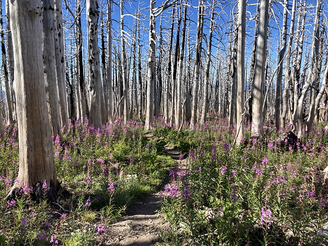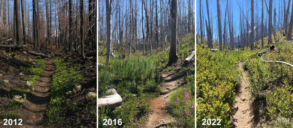 But Mirror Lake, the Wind Creek Basin and Still Creek valley were still recovering from the catastrophic Sherar Burn when the logging bonanza took off in the mid-1900s, and were mostly spared from clear cutting and logging roads. That not only gave today’s pocket wilderness, but it also bodes well for traces of these old trails to still survive – and someday be rediscovered and restored, perhaps?