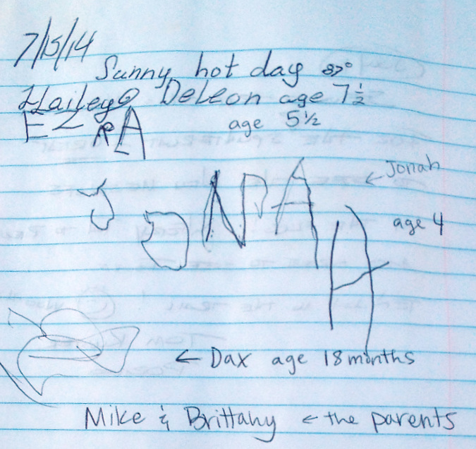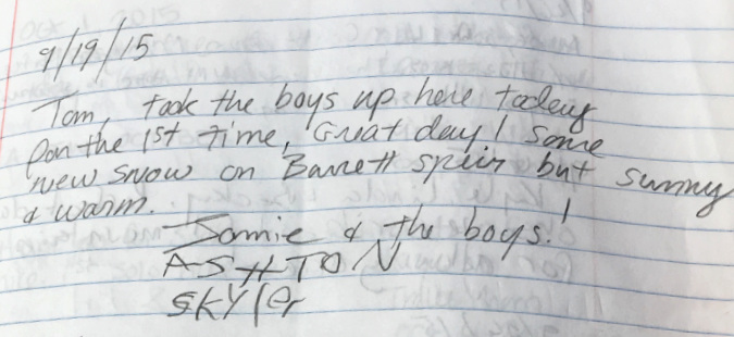 I so love seeing families on this trail. Here’s another family message from the same month in 2017, in this case with kids old enough to be Swifties: