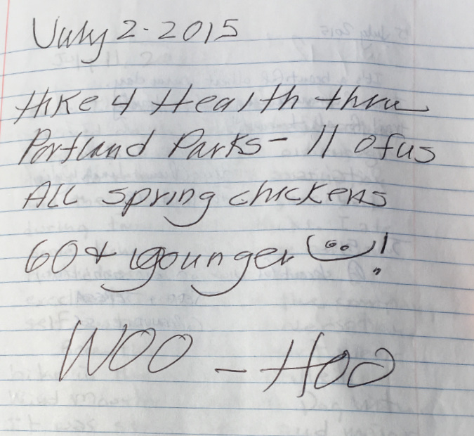 Here’s yet another message from the Portland Parks & Recreation Senior Hikers group. By 2017, they had become annual visitors, with a group of 17 along for this hike: