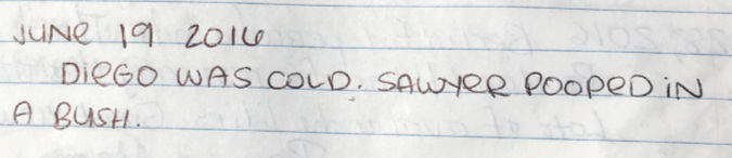 Here’s a message I’ve included as a cultural date stamp, as even the Owl Point Register wasn’t immune from a Game of Thrones reference in 2017 — though I was pleased to see that Owl Point won out over the premier episode!