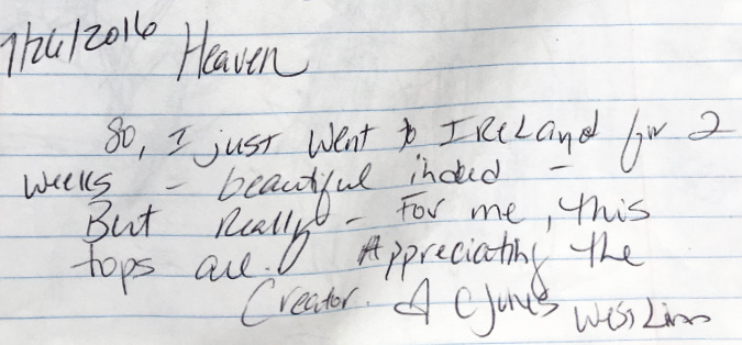 This message from September 2017 (below) is a first in the log – a portmanteau!  The Schweitzer + Franks families = the Schwanks! I’m going to guess that Latte was a canine member of the party, and I especially liked the unexpected last part of this entry. So many people are inspired to reflect on lost friends and family while at Owl Point.
