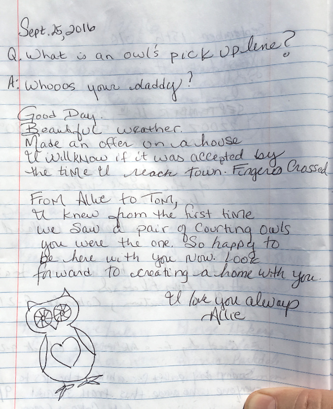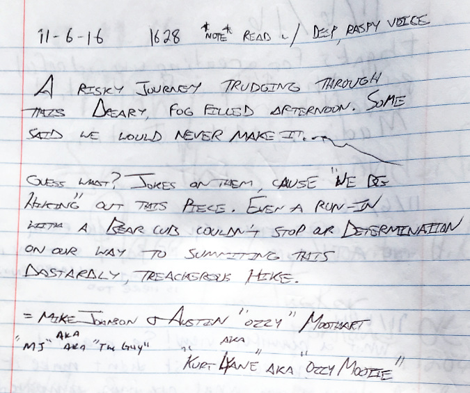 By August 2018, the original Owl Point Log had completely filled, and I placed a blank, new edition. For the next year or so, I also left the original log in place for folks to read, with this message: