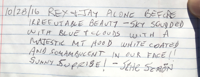 The last order of business on that memorable October 22 trip was to find the main viewpoint that had stood out so prominently from the Timberline Trail.