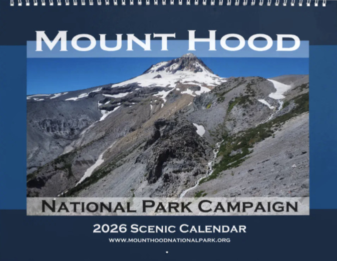 On that note, I’ll close with my annual calendars, as all proceeds go straight to TKO. This year I’ve branched out a bit, with dual calendars. First up, the 23rd edition of the Mount Hood National Campaign calendar, featuring the view from Gnarl Ridge on the cover for 2026: