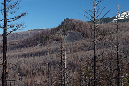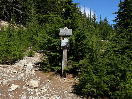 Beyond the talus slopes the trail reaches a ridgetop that eventually extends west to Owl Point. An upper trailhead exists here, too, making construction of the connector trail convenient for crews, since work on the new trail would begin here.