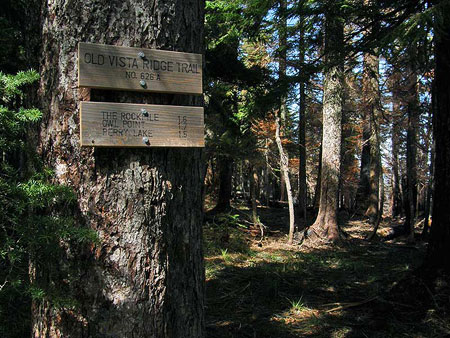 The old user-made signs posted at the Old Vista Ridge trailhead in July 2017