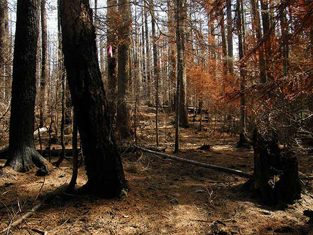 Blowdown from the 2020 Labor Day windstorm burying the Old Vista Ridge Trail