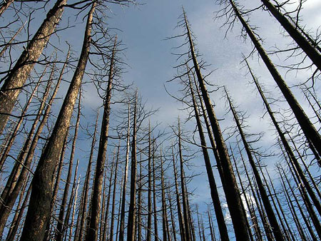 Dented but still standing – the Old Vista Ridge trailhead sign after the 2020 Labor Day windstorm