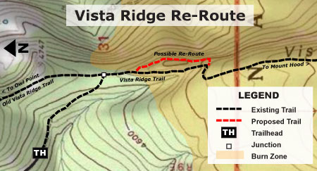 From the upper trailhead and viewpoint, the new connector would travel through a gently sloped forest for about a mile, then emerge where the unmaintained section of the Old Vista Ridge trail begins. From here, a series of expansive views into the Mount Hood Wilderness unfold along the way to Owl Point.